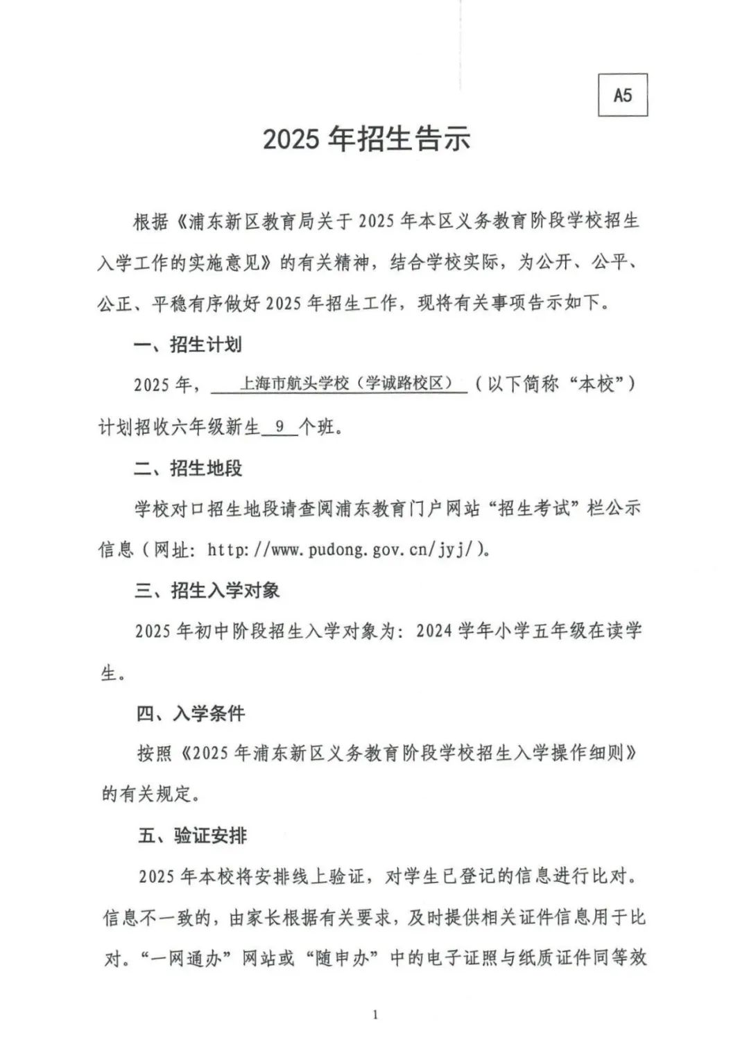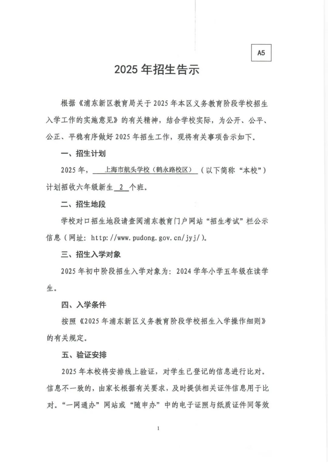 根据《浦东新区教育局关于2025年本区义务教育阶段学校招生入学工作的实施意见》的有关精神,结合学校实际,为公开、公平、公正、平稳有序做好2025年招生工作,现将有关事项告示如下。