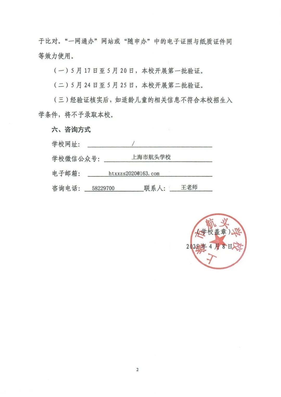 4.发放入学告知。5月20日起,本区将通过短信和“上海市义务教育入学报名系统”陆续告知相关入学信息。民办学校招生工作于5月27日完成,学校将录取名单报招办。学生按学校通知,携带户口簿、父母一方有效的《上海市居住证》《就业失业登记证》、参加本市职工社会保险证明、《本市户籍人户分离人员居住登记(回执)》等证件办理入学手续。