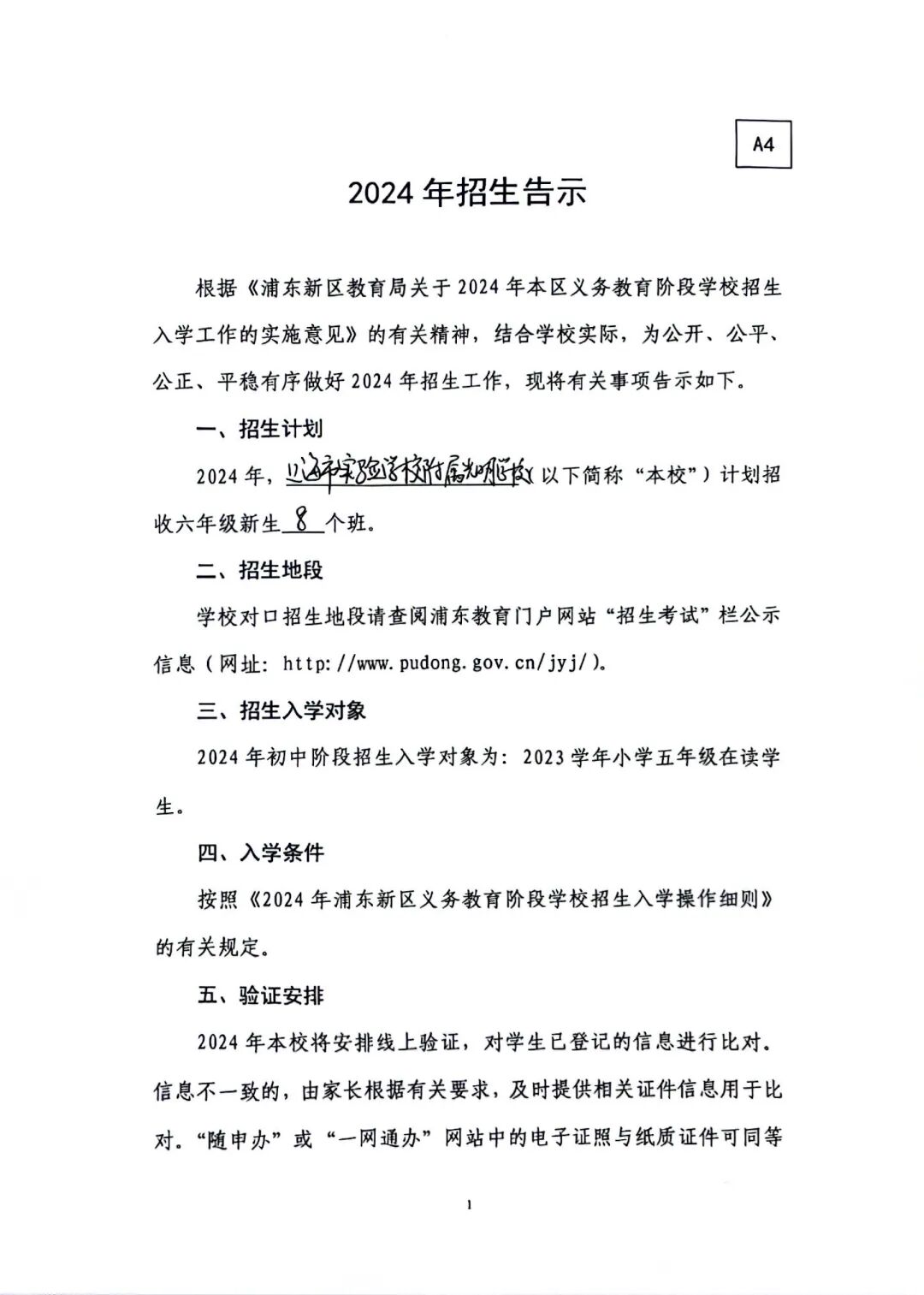 一、招生对象:符合上海义务教育条件的五年级小学毕业生