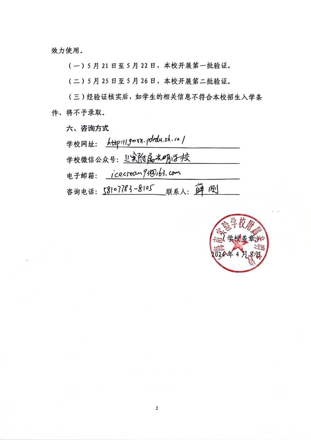 4.发放入学告知。5月20日起,本区将通过短信和“上海市义务教育入学报名系统”陆续告知相关入学信息。民办学校招生工作于5月27日完成,学校将录取名单报招办。学生按学校通知,携带户口簿、父母一方有效的《上海市居住证》《就业失业登记证》、参加本市职工社会保险证明、《本市户籍人户分离人员居住登记(回执)》等证件办理入学手续。