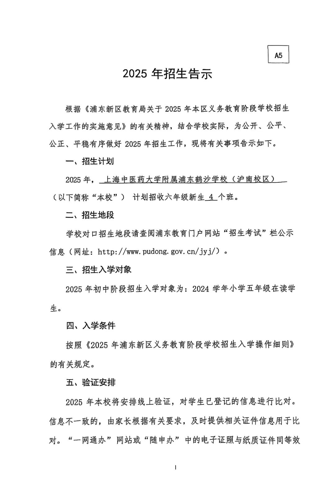 一、招生对象:符合上海义务教育条件的五年级小学毕业生