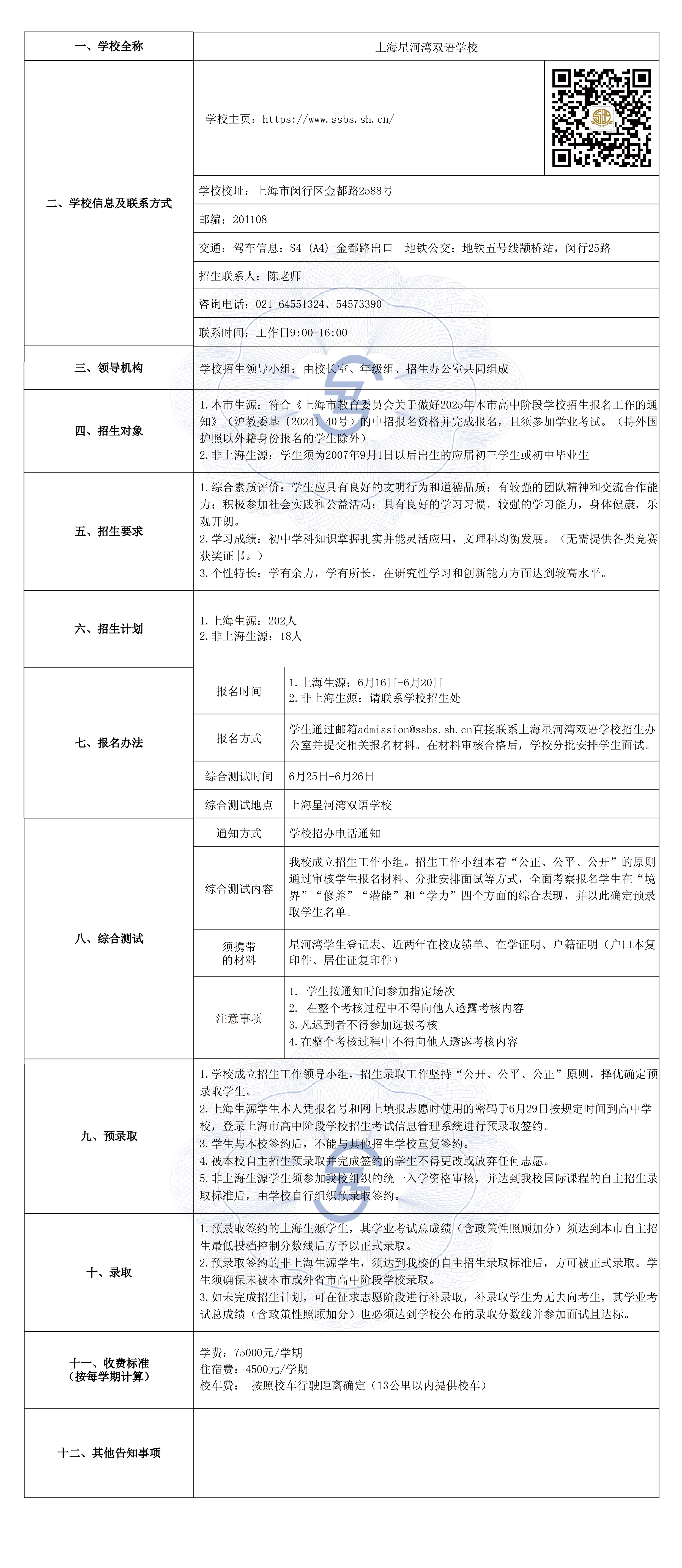 招生对象:每年招收小学一年级, 初中六年级, 高中十年级新生。其他年级招收个别的优秀插班生。