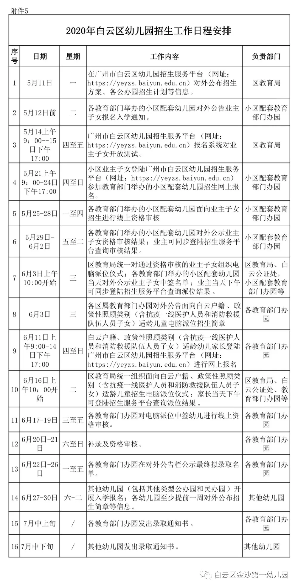 五、其他白云户籍和符合政策性照顾类别适龄儿童网上报名时间: