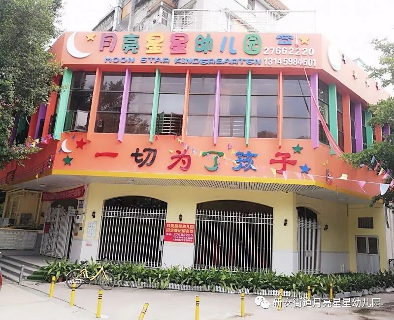 月亮星星幼儿园于2017年9月份经宝安区教育局批准正式开办,是一所市规范普惠性幼儿园,幼儿园位于宝安区新安街道19区灵芝园新村79栋。幼儿园建筑面积约1300平方米,户外场地面积700平方米。环境优美,设施设备齐全。园内设有舞蹈室、图书室、配有8个班的规模、每个班都配有独立的卫生间、空调、电脑、电视等。幼儿园的办园特色是“文明礼仪教学、体能教学”。开设的班级有小小班、小班、中班和大班。幼儿园办园宗旨明确:一切为了孩子,服务于家长,让孩子健康快乐的成长。