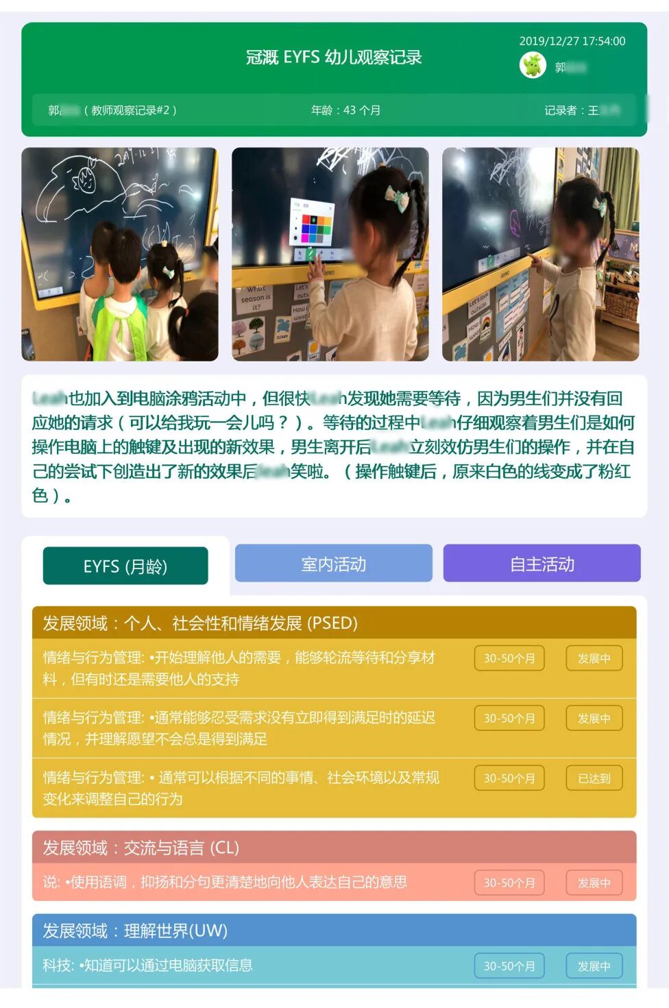 关 于 我 们 冠萃碧海云天幼儿园是 冠萃教育旗下的一所幼儿园。 基于“创造孩子非凡未来”的教育理想, 冠萃教育携手英国知名学前教育专家, 将优质的英式早期教育引入中国。 Originated from UK Synchronized with World 源 自 纯 正 英 伦 起 步 即 与 世 界 同 步 冠萃以深圳为基点, 落户北京、上海、广州等国内核心城市, 我们以开放的心态、国际化的视野, 整合优质教育资源, 构筑完善教育环境, “学校、家庭、社区”三位一体, 立志让广大家庭尽享冠萃品质教育, 让每个孩子的非凡未来触手可及。 Cultivation Objectives 培 养 目 标 冠萃致力于将儿童培养成为 德才兼备、健康自信、乐学好问、 勇于探索、善于沟通合作与解难的 终身学习者和未来的开拓者。 Curriculum System 课 程 体 系 基于“创造孩子非凡未来”的教育理想, 以英国EYFS为核心教育纲领, 把“每一个孩子都是独一无二的” 作为我们的教育理念, 构建冠萃独有的课程体系, 创设多元教育文化, 培养具有中国情怀的国际小公民。 Curriculum Characteristics 课 程 特 色 我们重视培养儿童有效的学习特征。 通过研究式、创造性的教育方法, 构筑冠萃七大特色课程, 在游戏中学习和成长, 帮助每一位幼儿在 个人、社会性与情感发展、 身体发展、交流语言发展、认识世界、 读写发展、艺术表现力与创造力以及数学 七大领域全面发展。 Assessment System 评 价 系 统 携手潮流科技, 斥资打造专属的课程评价系统 ——“冠溉家园”。 可实现线上线下评价一体化, 家长在家也能实时查看孩子在园状态。 它既是一款课程评估工具, 也是家园之间沟通、互动的重要桥梁。 独创幼儿长期追踪发展评估体系, 期中期末成长评价报告、 可视化七大领域发展水平雷达图等, 供家长和老师准确了解孩子的总体情况。 High-Standard Faculty 优 质 的 师 资 力 量 Kaushika Patel 教学总督学 冠萃EYFS 教研中心全国总督学; 英国教学质量评审员(A1)、内部执业资格评审员(V1); 英国教育标准局Ofsted检查官; 英国学前教育部特聘授权的EYFS 教师资格培训师; CACHE 认证 Auralern师资培训中心联合创办人; 哈罗公学学前教育专业系主任。 宋春蕾 (HK)教学总监 冠萃EYFS教研中心课程总监 华中师范大学教育学 博士 香港中文大学(香港总校区)学前教育硕士 十九年学前教育从业及管理经验 深圳市学前教育专委会讲师团讲师 深圳市学前教育协会会员 深圳市名园长工作室主要成员 前深圳市普林斯顿国际幼儿园旗舰园园长 曾任职于深港两地多所著名的幼儿园 在多所国际幼儿园担任国际课程顾问 胡洁 运营总园长 资深园长,14年国际幼儿园运营管理经验; 先后担任知名国际幼儿园园长、集团幼儿园督导、集团运营负责人; 拥有幼儿园集团化运营、国际课程本土化实施、团队建设等丰富的管理经验; 始终致力于中西双文化的教育实践与研究。 吴妍燊 园长 中国学前教育专委会会员; 深圳市学前教育协会理事及片区专员; 从事幼儿教育行业18年,有着丰富幼儿园的创建和运营经验; 先后担任深圳某知名集团高端园创始人,深圳中学附属第二幼儿园园长; 专注幼儿园园本课程开发,擅长幼儿园团队层次化与精细化管理。 英国权威专家引领 中外园长精细管理 三教一保教师团队 专业教师品质保证 Introduction 园 所 介 绍 ▲ 环境实拍 冠萃碧海云天幼儿园, 位于侨城东碧海云天小区, 园所环境优美、绿化率高, 人性化的园林设计, 让孩子们沉浸其中, 自由的释放天性。 ▲ 日常的在园生活 我园与英国剑桥大学、 英国威尔士大学有长期合作, 是一所以中华文化为底蕴, 同时囊括了西方文化的国际化幼儿园。 浸润式的英语环境, 帮孩子轻松开启第二语言的学习。 ▲丰富多彩的园内外活动 ...... 以每个孩子的起点为基点, 在生活里获得经验, 从社会中历练情感, 到舞台上展现才华。 ▲ 一起“掌”大活动留念 在过去的一年里, 我们收获了广大家长朋友的大力支持, 也由衷感谢每一份理解与信任。 未来的日子里, 希望有更多的孩子入读我园, 我们必将用心呵护, 陪伴每一位小萃宝一起“掌”大。 Enrollment Enquiries 入 学 垂 询 冠萃碧海云天园秋季招生名额有限, 赶紧点击下方小程序预约报名吧! 小程序 报 名 服 务 号 扫上方二维码加微信咨询