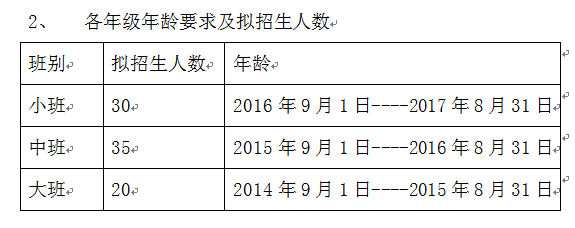 小班招生对象为:2018年9月1日--2019年8月31日(含8月31日)前出生的幼儿,共2个班。
