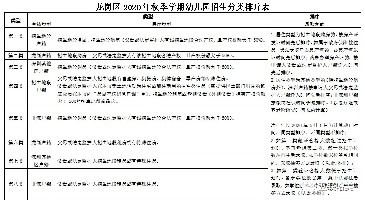 第八类 | 招生范围户籍 | 父母或法定监护人在本市无土地性质为住宅或商住两用的住宅类住房(须提供国土部门出具的家庭成员在本市的“不动产信息查询结果单”)。 | 1.祖父母(外祖父母)拥有产权份额大于50%的龙岗墟社区范围内商品房。 |