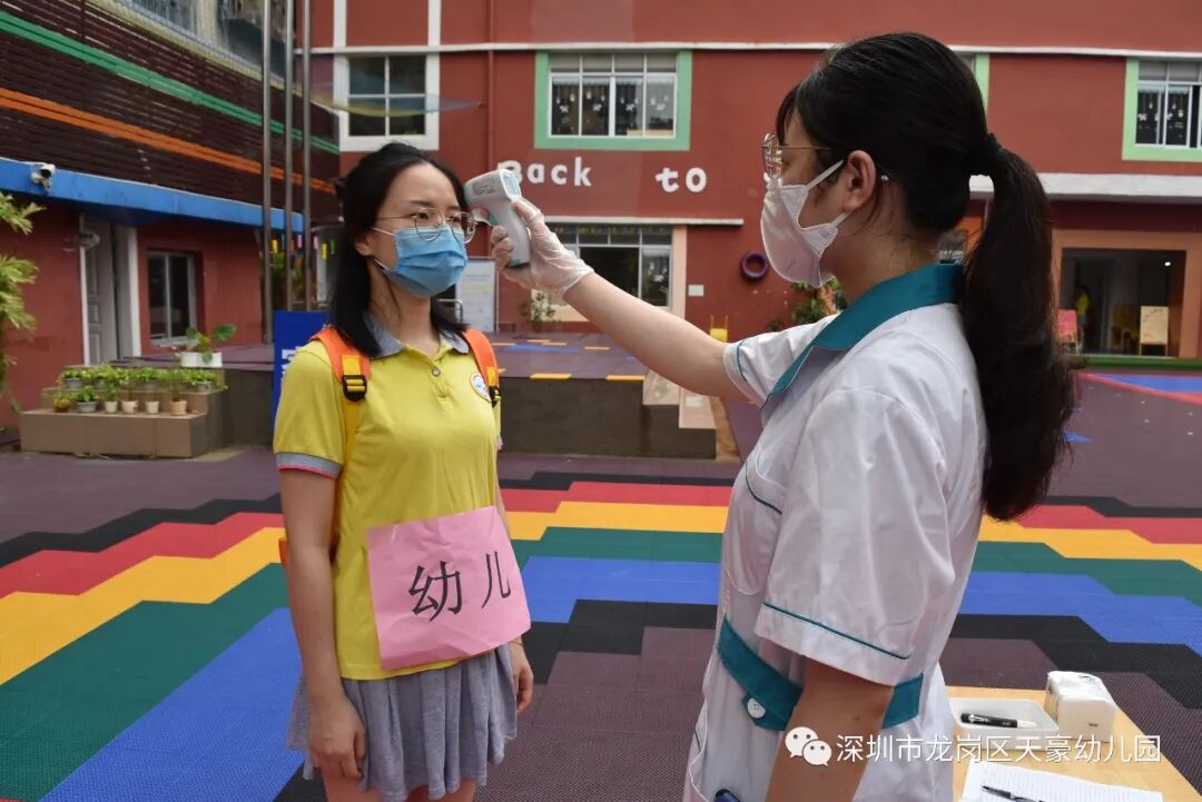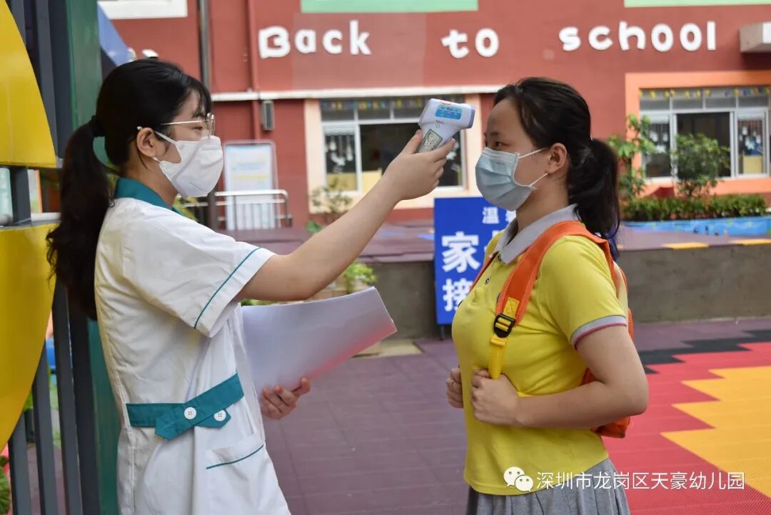 天豪幼儿园返园须知 尊敬的家长、 亲爱的孩子们: 大家好! 当终于得知了幼儿园开学的好消息时,家长们既兴奋又有了新的困感:新学期如何报到?入园前需要进行哪些准备?孩子入园和离园有什么流程及要求?孩子进入幼儿园后怎样做好个人防护?为此,我们为您详细制定了这份开学须知。 相信有了家园之间的有效沟通和通力合作,我们的开园工作一定会安全而有序地进行。新学期即至,但疫情防控不能松懈,孩子的安全取决于家长对防疫要求的执行。 开学时间 6月2日(星期二) BAOMING 返园条件 1.幼儿及家庭同住人员身体健康,14天内无上呼吸道感染症状,如有发烧、咳嗽等症状必须及时就医,不隐瞒不谎报,并暂缓返园。 2.开学前14天之内幼儿及家庭成员没有去过疫情高发地区或接触过疫情高发地区回来的人员。 3.请家长填写返园前14天的《学生健康记录卡》与《安全承诺书》。(具体操作由各班班主任说明) 返园准备 1.请家长按以下“①-④”的序号把资料排好顺序并装订,用文件袋装好,写上幼儿姓名交班主任。 ①幼儿复印件资料上交。(父母及孩子身份证或户口本、出生证、预防接种本原件复印件) ②入学查验证明。(凭幼儿“预防接种本”到南联社康中心开具证明) ③幼儿入园体检表。(南联社康中心进行体检。) ④幼儿一寸照六张。 2.提前清洗床上用品并在装被褥的袋子上贴上标签(班级+幼儿姓名),送被子来幼儿园交给班级老师,家长不入园。 3.在等候区等候时,请间隔一米排队,不聚集不交流,提前准备好出示健康码。 4.保安、值班老师查看家长健康码并测量体温。 返园须知 1.幼儿园实行错时来园,错峰离园。请家长务必守时接送,如有迟到者,请与班级老师报备,并听从现场指挥。 年级 来园时间 离园时间 大班 8:30-8:40 16:50-17:00 中班 8:40-8:50 16:40-16:50 小班 8:50-9:00 16:30-16:40 2.出门前,请测量体温,体温<37.3°C为正常体温。入园时,家长和幼儿佩戴口罩按照上表的来园时间,在园所门口有序排队(间距一米),家长刷卡后,让幼儿自主入园(家长不得进入园所)。 3.离园时段,家长务必按规定时间在等候区等候,听从值日老师的安排有序排队,在指定区域接送孩子(佩戴口罩,不聚集交谈,保持间距,即接即走)。 4.开学后,请家长保持电话畅通,孩子身体如有异常情况,确保班级老师能及时联系。 幼儿一日生活流程 【入园前】 ▶体温自查 入园前,请您在家给宝贝量好体温。如发热(≥37℃)咳嗽等任何不适症状,及时报告老师,并带孩子及时就医。 ▶物品准备 给小朋友准备好水壶、换洗衣物、隔汗巾等。 ▶ 注意安全 上学途中全程要戴好口罩,尽量不选择公共交通工具,尽量选择步行或自家车接送。步行不走人流较多的地方,与行人和同伴保持1米左右安全距离。 ▶ 按时到园 按幼儿园规定时间入园,尽量不早到或者晚到。 【入园】 ▶ 有序排队 到达幼儿园门口后,按一米间距排队,不要拥挤扎堆,听从值日老师指挥,依次排队做好测温准备。 ▶ 体温检测 进入幼儿园后,进行体温检测。幼儿体温检测过程中家长需要在园外等待,如发现幼儿温度过高,应及时接回家或送医。 ▶ 有序入班 测温正常的小朋友走进教室由老师引领到洗手池,进行手部清洁。 【进班】 ▶ 保持卫生 教育幼儿不轻易揉眼睛,摸口鼻,不对着别人打喷嚏。 ▶ 应急处理 发现体温异常或感到身体不适立即告诉老师。若出现发热、干咳、乏力、鼻塞、流涕、咽痛、腹泻等症状时,在老师引导下,到幼儿园临时隔离观察室,由保健医医进一步检查,并拨打“120”送至人民医院发热门诊诊断。 【区域活动】 ▶ 分区活动 区域活动时按要求分区活动,小朋友之间保持好距离,控制人数。 ▶ 勤通风 课间教室门窗必须打开,保持空气流通。 ▶ 巧洗手 要使用“七步洗手法”勤洗手,保持个人卫生。 【就餐】 ▶ 餐前洗手 用餐前按照“七步洗手法”进行手部消毒。 ▶ 有序就餐 到指定位置安静就餐,按指定要求放置餐盘和餐余垃圾。 【午检午休】 ▶ 午检要求 午休前老师组织班级幼儿进行“体温午检”,逐一测量幼儿体温。 ▶ 午休纪律 午休期间不相互攀谈,保持安静。 【离园】 ▶ 注意安全防护 放学路上也要全程佩戴口罩,与小朋友之间不扎堆、不打闹。放学后应尽快回家,“点对点”往返于家庭与幼儿园,确保不在入、离园途中进入其他场所,不要在外逗留和聚集。 ▶ 尽量减少外出 疫情期间,尽量不去人员密集场所或空气流通不畅的场所。 “陌上花渐开,希望纷至沓来。”幼儿园已经做好了准备,迎接宝贝们的到来。期待明天看到你们活泼的身影,听到你们喜悦的欢声笑语。 宝贝们,你们准备好了吗?我们期待与你相见! 招生范围 3--6岁儿童 所需材料 ①幼儿复印件资料上交。 (父母及孩子身份证或户口本、出生证、预防接种本原件复印件) ②入学查验证明。 (凭幼儿“预防接种本”到南联社康中心开具证明) ③幼儿入园体检表。 (南联社康中心进行体检。) ④幼儿一寸照六张。 温馨提示: 请家长按以上“①-④”的序号把资料排好顺序并装订,用文件袋装好,写上幼儿姓名及家长联系方式,再提交到幼儿园办公室 招生热线 家长可通过电话、微信或公众号平台提前预约参观了解: 招生热线:0755-28712142 李老师:15014018558(微信同号) 刘老师:13925283330(微信同号) 报名地址:广东省深圳市龙岗区 龙岗街道南联社区向银路94-1号