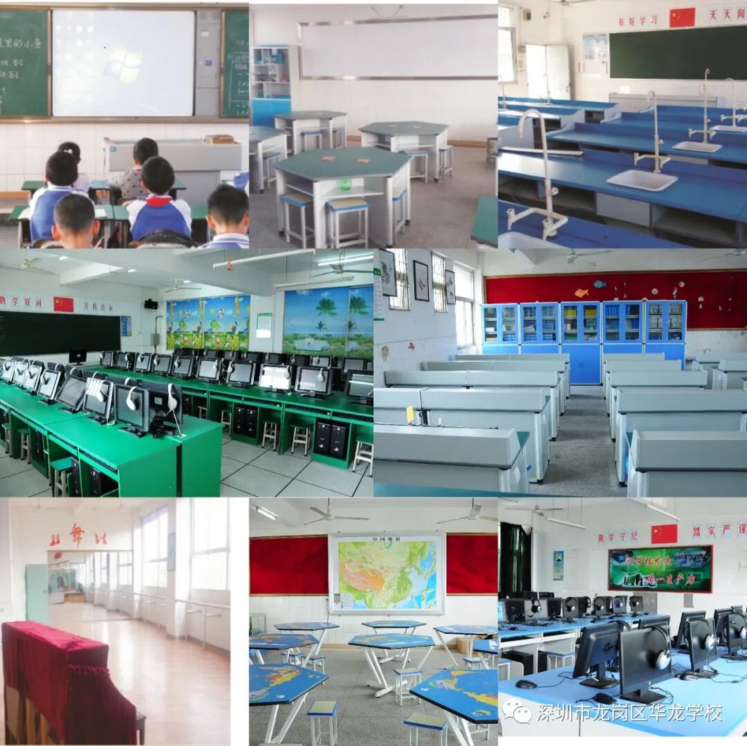 华龙学校创办于2003年8月,是经深圳市龙岗区教育局审核批准的一所九年一贯全日制学校。校园占地面积32000平方米,建筑面积25000平方米。现有学生近3000人、教职工200余人。教学楼按等级学校的标准建造,设计新颖、造型美观,教学区、运动场、生活区布局科学合理,设施设备齐全,每间教室均为多媒体电教室,拥有电脑室、语音室、音乐室、舞蹈室、书法室、美术室、手工制作室、图书室、劳技室、心理咨询室、地理教室、科学教室、物理、化学、生物实验室及仪器准备室等20多间教学功能室;学校活动空间大,有生物园、地理园、篮球场、羽毛球场、乒乓球场、200米环形塑胶跑道体育运动场、100米环形塑胶跑道体育运动场各一个。学校环境幽雅、舒适,四周宁静,加上校园绿化、美化、净化,充满了浓郁的文化氛围。