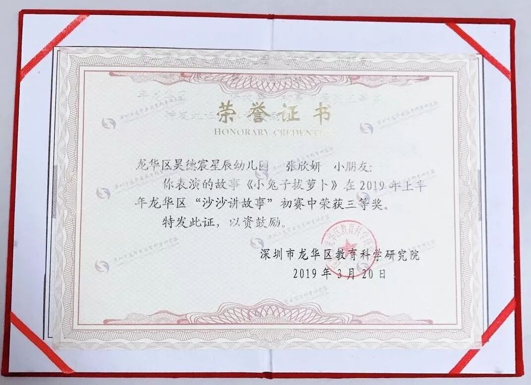 当孩子第一次独自面对世界的时候, 有这样一个地方, 有爱孩子的心,有懂孩子的人, 更有专业的知识引导接纳孩子; 在这里, 每个孩子都是纯洁可爱的天使, 他们会得到最好的关爱; 在这里, 每个孩子都是一粒种子, 他们将得到大地的滋养; 我们不是关注鲜花的园丁, 更不是只问收成的农夫, 我们只是静待花开的守护人。 期待您走进昊德宸星辰幼儿园, 走进真正属于孩子的乐园, 享受美好的童年时光! 园所简介 深圳市龙华区昊德宸星辰幼儿园是深圳市昊德宸教育集团旗下的一所区一级幼儿园,创办于2016年9月,位于龙华区大浪街道华昌路38号,幼儿园占地2200平方米,建筑面积3300平方米,园内环境温馨优美、硬件设备设施优良,教师队伍有抱负、有信念、有道德、爱孩子、精熟幼儿教育专业。幼儿园以“用爱教育 快乐教育”的办园理念,在“发展孩子、服务家长、成就教师”办园宗旨的指引下实施教育,是一所幼儿喜爱、家长满意、社会认同的高质量现代化幼儿园。 丰富多彩的幼儿园活动,不定期开展特色活动,科学合理的育儿保健,为幼儿提供科学、合理的营养配餐。为幼儿的健康与未来发展奠定了坚实的基础。 报名攻略 ☑招生对象: 2岁半~6周岁的适龄健康儿童,户籍地域不限。 ☑学位申请材料: (1)幼儿体检卡原件。(定点医院:龙华区妇幼保健院) (2)预防接种本复印件及社康开具的入园查验证明原件。 (3)适龄儿童监护人和幼儿户口本复印件。 (4) 幼儿出生证明复印件 (5) 监护人身份证复印件。 (6)幼儿一寸彩照8张及接送家长一寸彩照一张。 ☑联系电话:0755-27526933 13715385519 黄园长 18475617056 刘老师 13828786385 田老师 ☑幼儿园地址:深圳市龙华区大浪街道华昌路38号 孩子的乐园 精彩活动 1 国庆主题活动 2 防震减灾主题活动 3 119消防安全主题活动 4 122交通安全主题活动 5 食品安全应急演练 6 各类安全演习 7 读书漂流月 8 沙沙讲故事 特色活动 1 中华武术 2 有趣的体能活动 3 小小播音室 社区活动进校园 1 消防知识进校园 2 心理健康知识进课堂 3 亲子实践活动 教师风采 1 师德师风演讲 2 教师讲故事比赛 3 教师优质课评比 家园共育 1 家长委员会 2 家长助教 3 家长开放日 4 家长会 6 家长讲座 深圳市昊德宸教育集团创建于1999年。是一家集学前教育、中小学教育、国际教育、教育培训、学校后勤服务为一体的专业性、综合性的民营教育集团。集团旗下有12家教育实体,其中2所九年一贯制学校,11所幼儿园,1家教育培训中心和1个后勤服务中心。现有学生5500余人,教职员工670余人 。 集团创始人叶华炜先生是一位极具教育情怀的人,他确立了“教育源于爱”的教育理念,以“办人民满意的教育”为宗旨,走高端化、现代化、国际化和差异化的办学之路。集团是中国民办教育家协会理事单位,广东省民办教育协会理事单位。18年的耕耘,现已成为深圳市乃至全国都有一定知名度的教育集团。