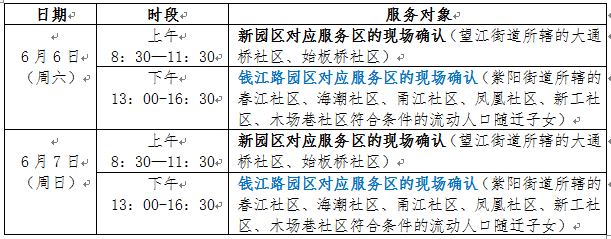 春江社区、海潮社区、甬江社区、凤凰社区、新工社区、木场巷社区(符合条件的流动人口随迁子女)现场确认时间:6月6日和6月7日下午13:30—16:30
