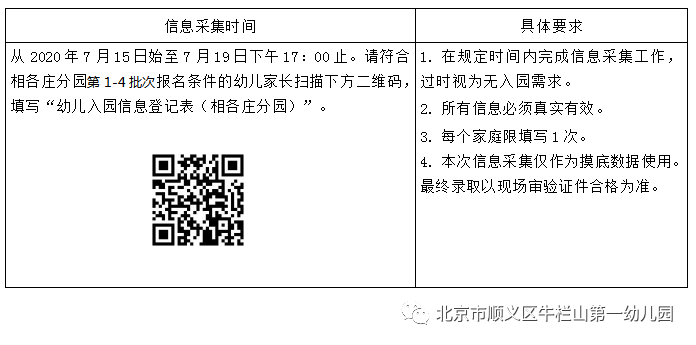 依据区教委和镇政府关于幼儿园招生工作的相关政策和规定,遵循“园所自主、属地主责、教委配合”的总体思路和“就近就便,免试入园”的原则,结合本园办园实际,现将2020年牛栏山第一幼儿园(相各庄分园)线上线下招生安排及相关事项公告如下: