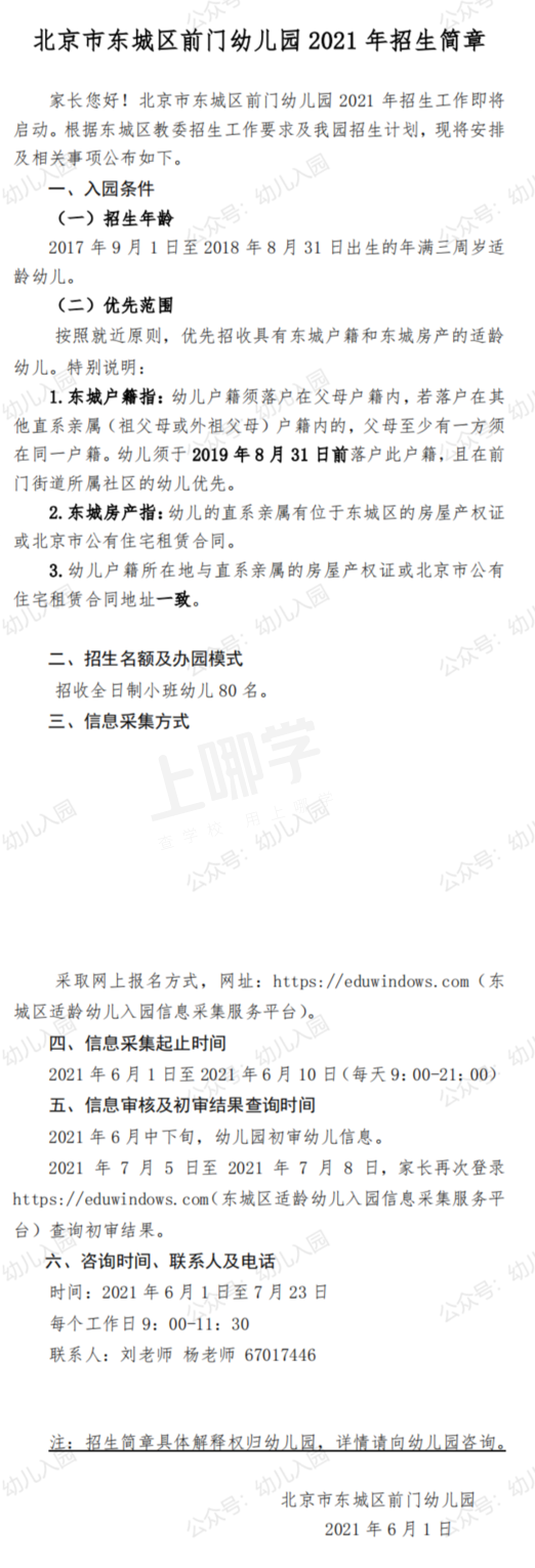 按照就近原则,优先招收具有东城户籍和东城房产的适龄幼儿。特别说明:
