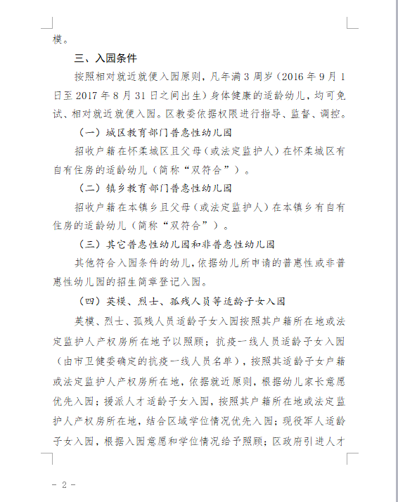 户籍在本镇乡(北京市怀柔区庙城镇)且父母(或法定监护人)在本镇乡有自有住房的适龄幼儿。