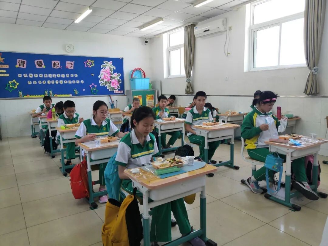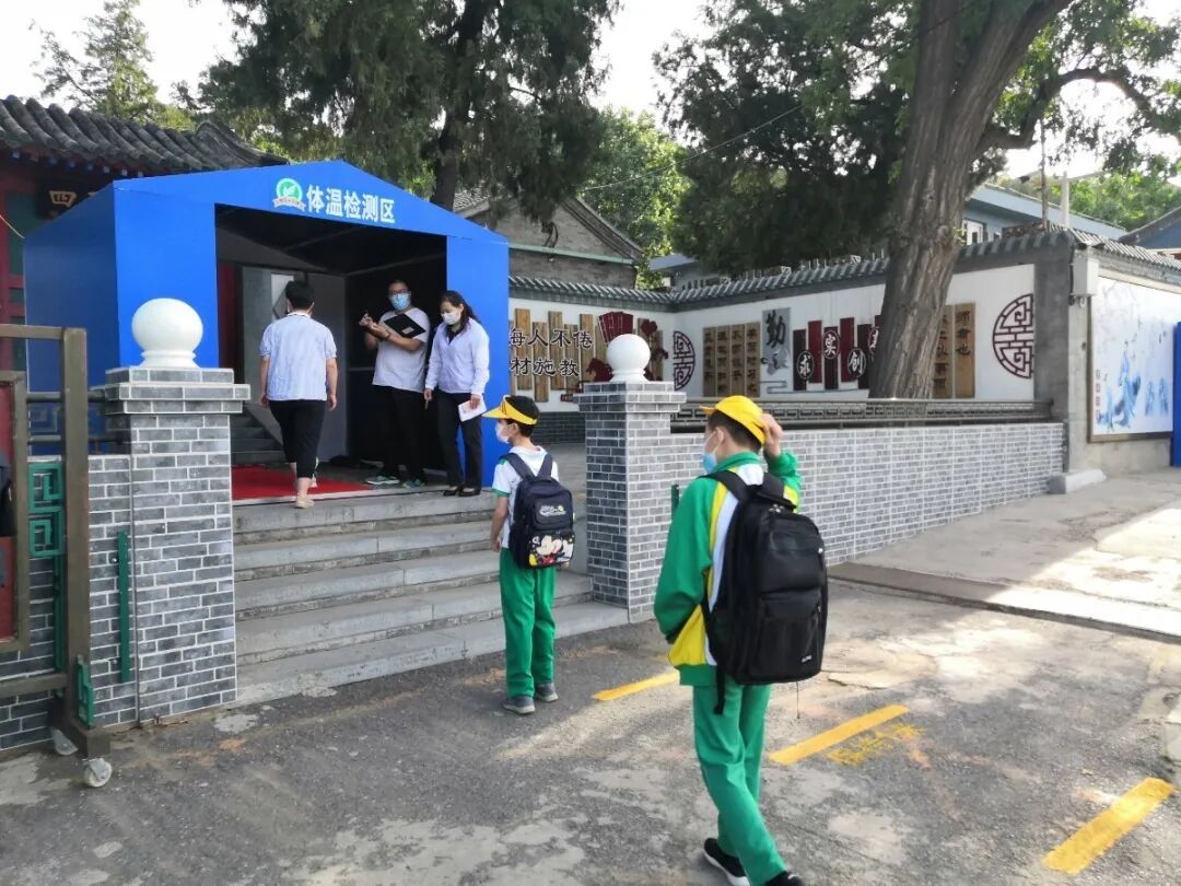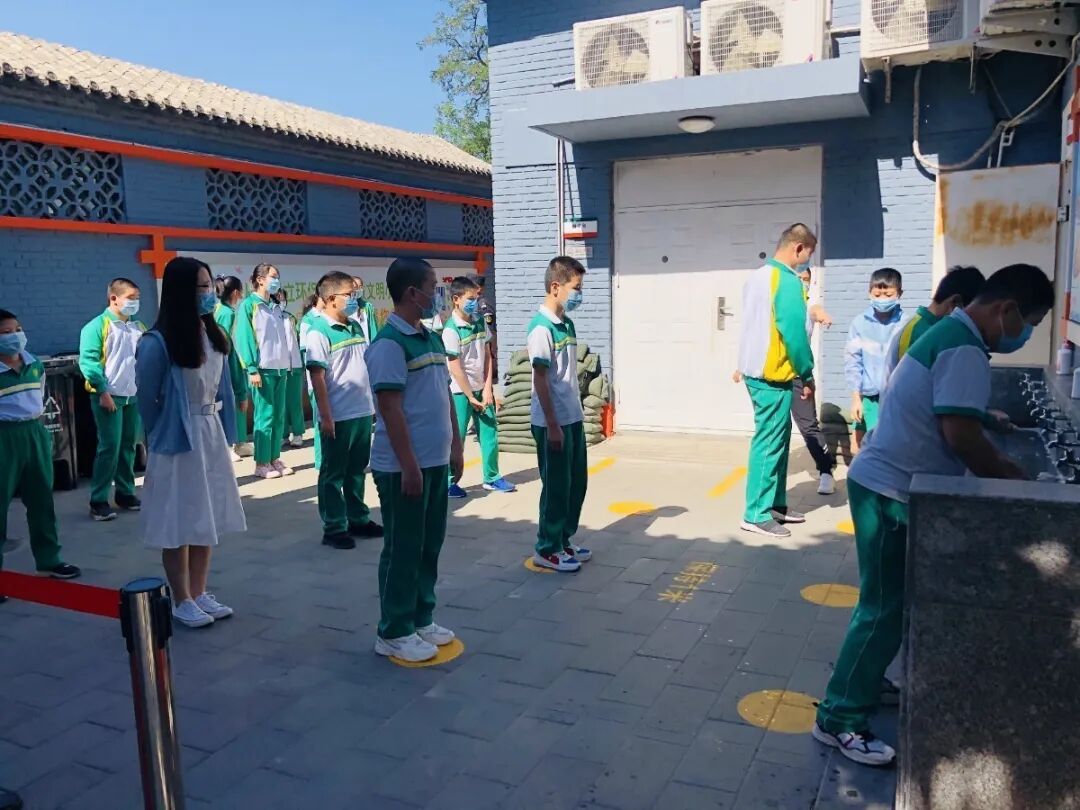 迎着和煦的阳光,背上心爱的书包,心怀激动之情,走进美丽的校园。在六一国际儿童节之际,海淀区四王府小学迎来了六年级同学重返校园。红色的地毯是欢迎同学们最好的方式,同时也是为同学们营造节日氛围最好的表达。 从同学们走向校园大门开始,保持1米以上间距、测量体温、走进校园,班级门口进行测温登记、进入教室保持间距。课间活动、上厕所、排队洗手、吃午餐等,各个环节严格控制安全距离。这一切都是为了给孩子们创造一个健康且安全的校园学习环境。
