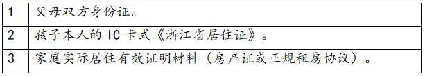 2 | 孩子本人的IC卡式《浙江省居住证》。 |