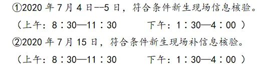 ①2022年7月30日-31日,符合条件新生现场信息核验。