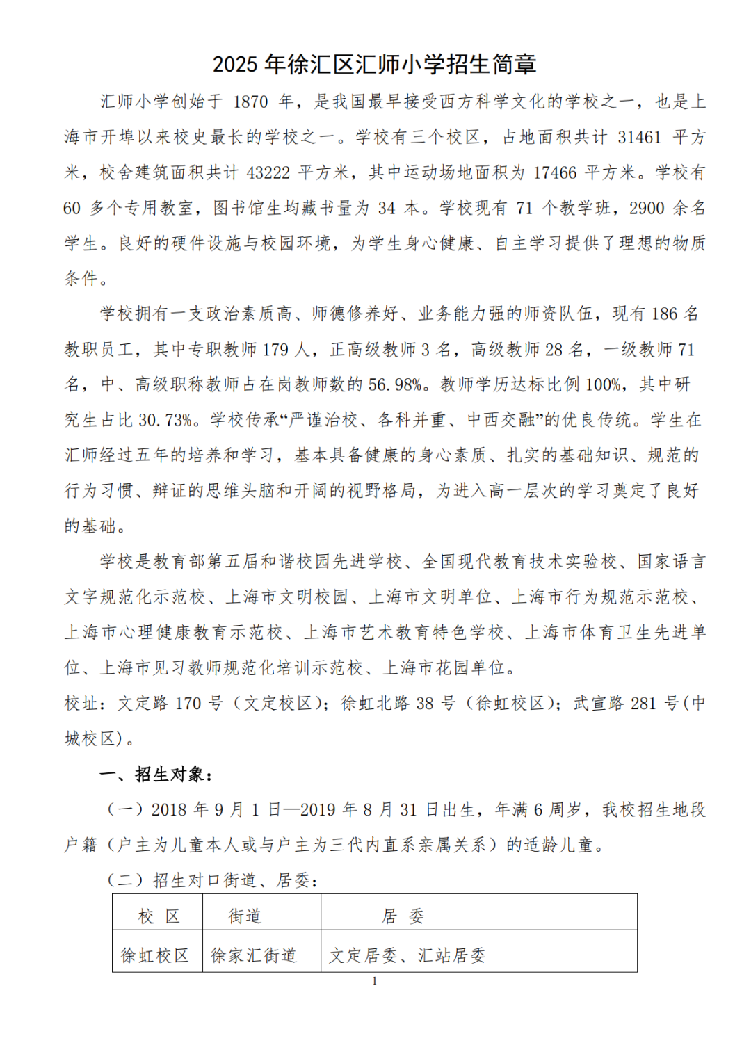 (一)按照市教委和徐汇区教育局招生实施意见,根据“相对就近、免试入学”的原则,继续实行对口