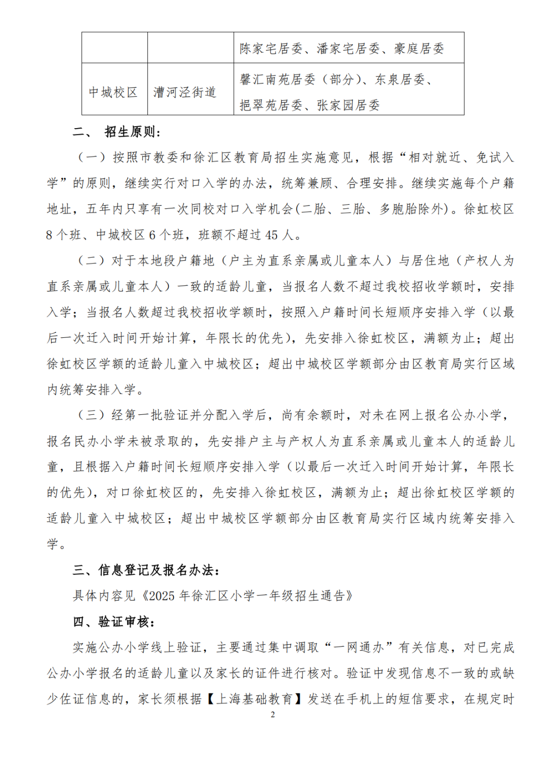 具体内容见《2020年徐汇区小学一年级招生通告》