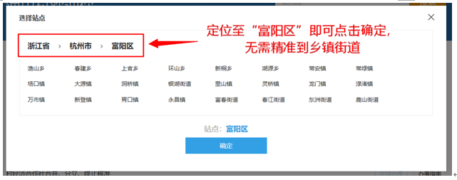 (3)位置定位在“杭州市-富阳区”。