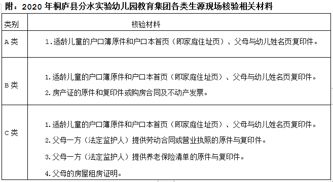 网上报名成功后,家长提交的资料与公安、住建、社保、房管等部门提供信息不符的生源需进行现场核验,核验前幼儿园将会以短信的方式通知相关家长(未收到通知的无需现场核验)。6月13日、14日上午8∶30—11∶30,下午13∶30—16∶30,家长持相关材料到桐庐县分水实验幼儿园教育集团进行现场核验(现场核验材料详见下方附件),逾期不再受理。