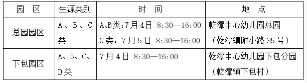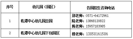 ①在幼儿园第一批次招生录取结束后,超计划生源由乾潭教办和乾潭中心幼儿园统一汇总后,结合家长意愿,调配到民办乾潭万乐幼儿园或者是乾潭镇育苗幼儿园。