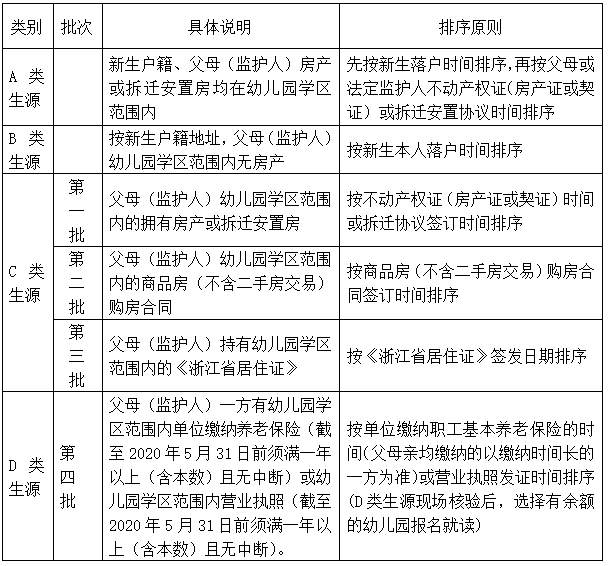 按新生户籍和父母(监护人)的独立住宅房产(100%产权,不含商住及其他用途的房产,下同)、《浙江省居住证》(指由公安部门签发的乾潭镇范围内有效IC卡式居住证,下同)等情况分为A、B、C、D类生源。户籍、不动产权证、《浙江省居住证》等相关材料取得时间须为2020年5月31日及之前。