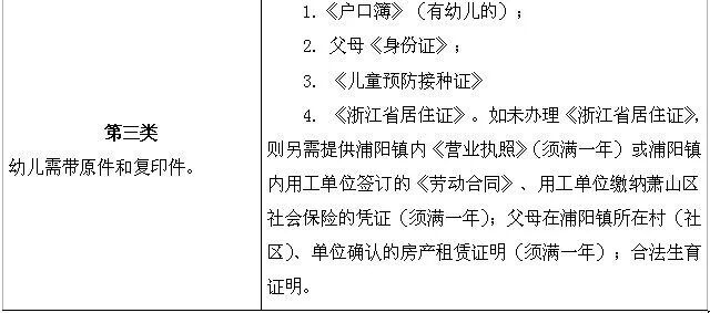 非浦阳镇户籍,家庭生活基础在浦阳镇。持有居住地在浦阳镇范围内的有效IC卡式《浙江省居住证》的适龄幼儿;符合“实际居住1年及以上、父母一方在浦阳镇合法务工(或经商)1年及以上(凭劳动合同或营业执照、社保凭证)、父母一方在萧山缴纳社会养老保险1年及以上”三项条件的适龄幼儿。