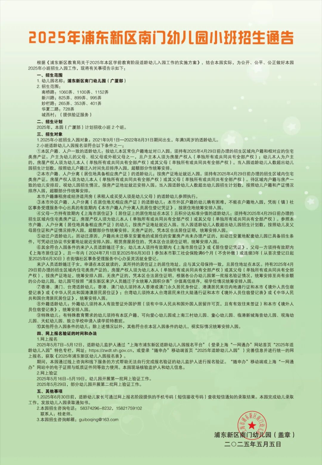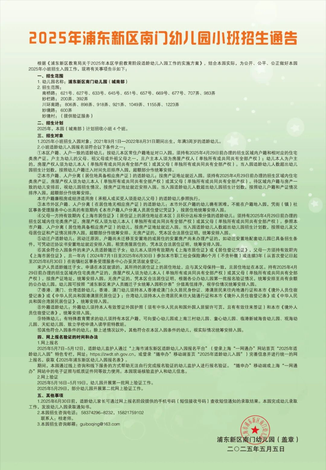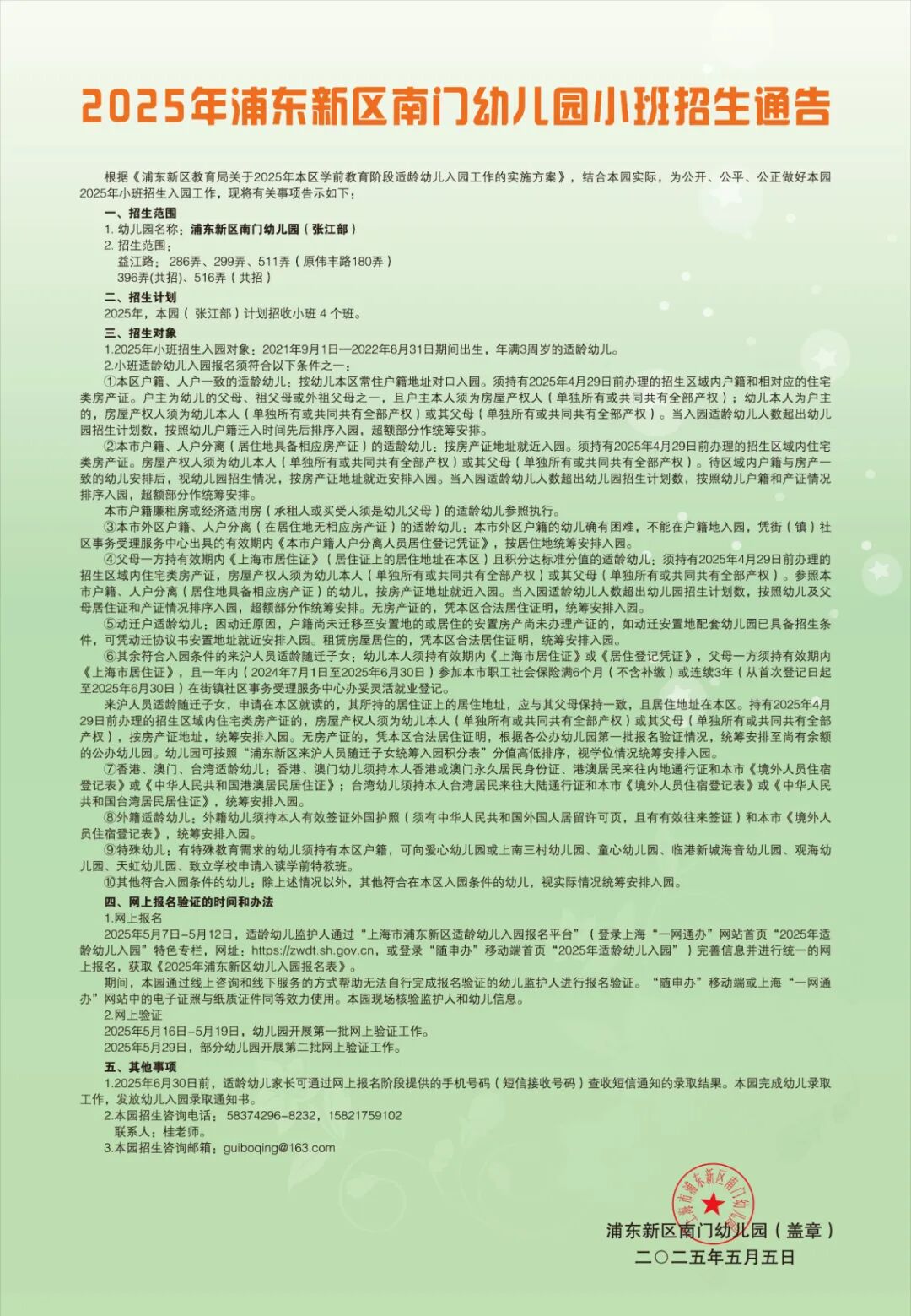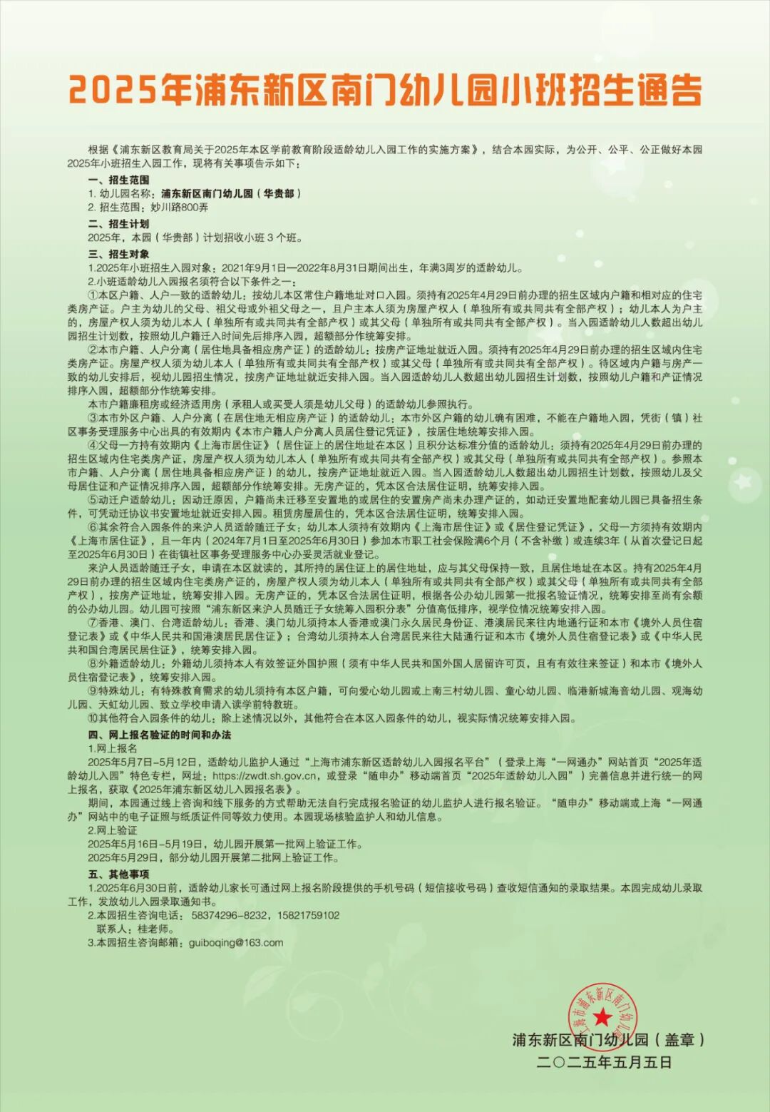 3、本园招生咨询电话:58374296-8036,联系人: 桂老师 。