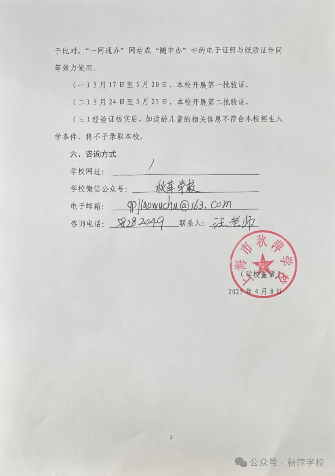 温馨提示 一年级入学咨询请联系宋老师(15802112122); 教务处邮箱:qpjiaowuchu@163.com。