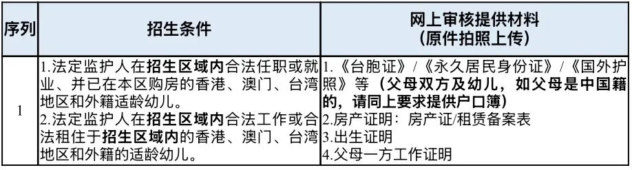 6 | 居住于华新镇,持有《台胞证》、香港或澳门永久居民身份证、《外国人永久居住证》及《国外护照》的适龄幼儿。 | 1.《台胞证》/《永久居民身份证》/《国外护照》等(父母双方及幼儿,如父母是中国籍的,请同上要求提供户口簿) 2.房产证明:房产证/租赁备案表 3.出生证明 |