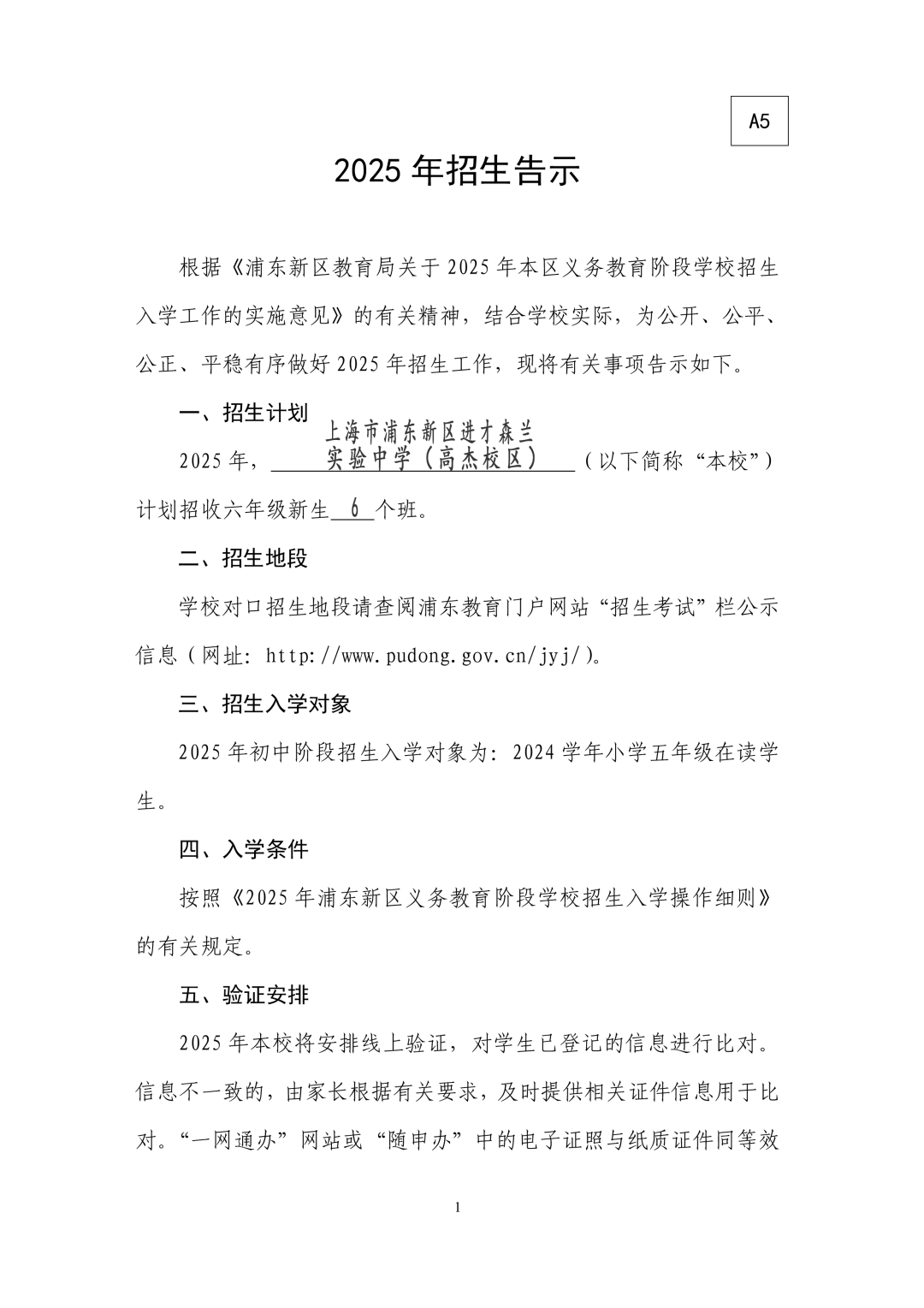初中教育指导中心、小学教育指导中心指导学校通过网站公告、“校园开放日”、在社区张贴《招生告示》等形式,向区域内适龄儿童及家长告知招生工作政策、入学信息登记时间和地点、入学验证时间和地点及携带所需审核的各种证件,积极应用“一网通办”电子证照。区招生办公室(以下简称“招办”)牵头落实,按时向幼儿园升入小学的适龄儿童发放《上海市小学入学信息登记表》,向小学升入初中的学生发放“入学告知书”,作为入学的凭证。