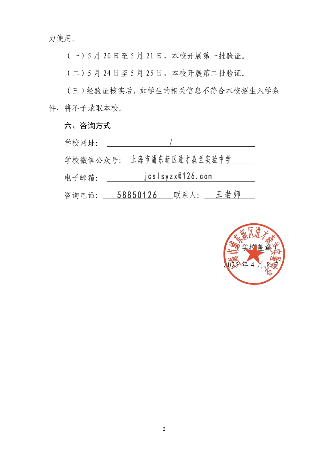 1.公布招生简章。区教育局义务教育处加强对民办学校招生工作的指导与管理,根据学校的实际情况核准招生计划和招生范围,并将各民办学校的招生计划报市教委备案,相关信息在“上海市义务教育入学报名系统”以及区政府网站教育频道上公布。严禁民办中小学计划外招生,严禁擅自以“国际部”“国际课程班”“境外班”等涉外名义招生。义务教育阶段民办学校不引进境外课程,不使用境外教材。