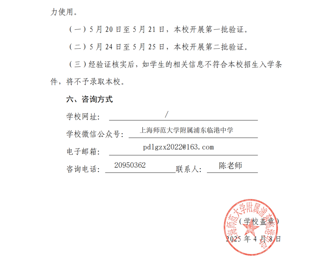 4.发放入学告知。5月20日起,本区将通过短信和“上海市义务教育入学报名系统”陆续告知相关入学信息。民办学校招生工作于5月27日完成,学校将录取名单报招办。学生按学校通知,携带户口簿、父母一方有效的《上海市居住证》《就业失业登记证》、参加本市职工社会保险证明、《本市户籍人户分离人员居住登记(回执)》等证件办理入学手续。