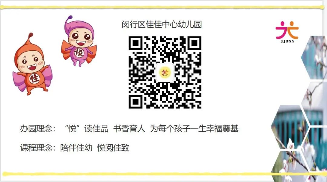 闵行区佳佳中心幼儿园创建于1992年,是一所公办全日制幼儿园,属区、镇双管单位。我园目前拥有两所园区,总园(莘沥园)位于莘庄镇中心区域,2000年8月开设联东分园,两所园区周边教育资源丰富,社区环境良好。在历任园长的执着追求与努力拼搏下,幼儿园于1998年被市教委批准为上海市一级一类幼儿园,并于2006年、2010、2015年顺利通过了“上海市一级幼儿园”的市级评审复验,并评定为闵行区示范园。在区教育局与莘庄镇政府的支持下,2021年7月即将开设都市分园。 办园理念:悦读佳品 书香育人 为每个孩子的一生幸福奠基。 培养目标:培养健康活泼、好奇探究、文明乐群、亲近自然、爱护环境、勇敢自信、悦阅能说、有初步责任感的儿童。