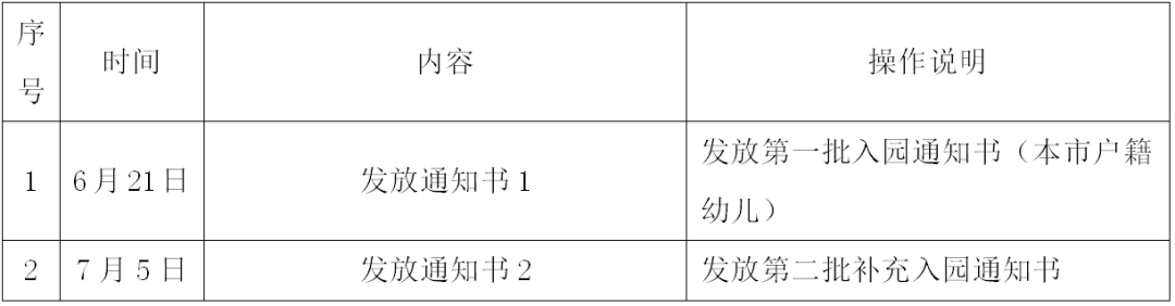 发放第一批入园通知书(本市户籍幼儿)。 |