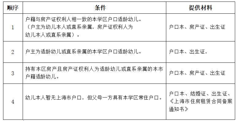 (1)幼儿须持有效期内《上海市居住证》或《居住登记凭证》,父母一方须持有效期内《上海市居住证》且一年内参加本市职工社会保险满6个月(2020年7月1日至2021年6月30日,不含补缴,因疫情防控允许补缴的除外),或连续3年(从首次登记日起至2021年6月30日)在街镇社区事务受理服务中心办妥灵活就业登记。
