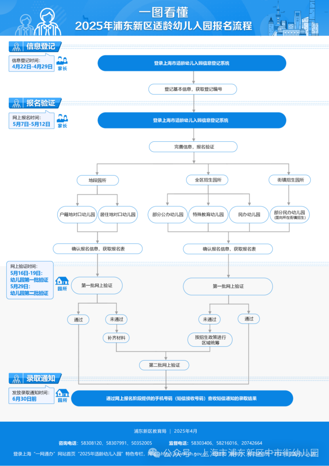 2025年5月7日-5月12日,适龄幼儿监护人通过“上海市浦东新区适龄幼儿入园报名平台”(登录上海“一网通办”网站首页“2025年适龄幼儿入园”特色专栏,网址:https://zwdt.sh.gov.cn,或登录“随申办”移动端首页“2025年适龄幼儿入园”)完善信息并进行统一的网上报名,获取《2025年浦东新区幼儿入园报名表》。