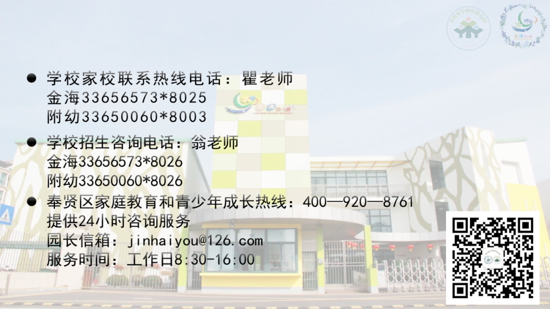 招生简章 招生对象 2020年9月1日至2021年8月31日期间出生的幼儿,身体健康(无慢性传染病)、能独立参加集体活动的本市户籍幼儿。 学区范围 东至金汇港,北至浦南运河,西至金海路,南至南奉公路及中铁湖光逸景 参考小区:浦泾苑、中铁湖光逸景、奉发名邸、保利明玥湖光、保利明玥霞光 招生计划 3个小班 收费标准 代办费:课程材料费100元/学期、社会实践活动费100元/学期、生活用品35元/学期 保育教育费:175元/月 餐费:10元/餐(按当月上学天数结算) 点心费:5元/餐(按当月上学天数结算) 上传材料 2024年幼儿入园推行全程网办,不再进行线下验证工作,所有的验证资料请全部上传到“奉贤区适龄幼儿入园报名系统”。家长可参照报名系统提示填写信息,并直接选择“一网通办”或“随申办”中的电子证照进行上传,电子证照库里未能显示的证照,请家长自行上传证照扫描件(或照片)。 报名流程 本次小班幼儿入园流程分为网上信息登记、网上报名验证、录取通知三个阶段。 4月22日—4月29日,监护人手机登录“随申办”移动端首页“2024年适龄幼儿入园”或登录“一网通办”网站首页“2024年适龄幼儿入园”特色专栏,网址:https://zwdt.sh.gov.cn,完成网上信息登记,收到“登记编号”短信提示。 1.网上报名。5月9日-5月15日,监护人手机登录“随申办”移动端首页“2024年适龄幼儿入园”或登录“一网通办”网站首页“2024年适龄幼儿入园”特色专栏,网址:https://zwdt.sh.gov.cn,点击“奉贤区”进入“奉贤区适龄幼儿入园报名系统”页面,进行网上报名,最后勾选“上海市奉贤中学附属幼儿园”。完成后收到“报名编号”短信提示。 2.网上验证。5月16日-5月22日,本园按照招生简章、学区划分做好本市户籍学区生网上验证工作。期间,如出现上传材料不完整、有异议等原因,将退回并对监护人注册手机发送短信,请监护人于5月23日前及时进入“奉贤区适龄幼儿入园报名系统”,重新补正相关佐证材料。 6月25日-6月28日,对通过验证预录取的监护人注册手机发送“预录取短信”通知。 7月1日下午:13:00— 16:00 ,请监护人按照短信通知要求,领取《录取通知书》,办理正式录取手续。 地点:上海市奉贤区光迎路420号(金海幼儿园) 注:信息登记和报名验证仅为幼儿信息确认和材料受理,非录取结果,录取结果须以《录取通知书》为准。 温馨提示: 1. 如家长在报名过程中有问题,可参考公告《2024年奉贤区学前教育招生工作的通知》《告家长书》等提示,或拨打本园咨询电话。 2. 如家长确实有困难无法自行完成网上信息登记和网上报名的,可参考公告 《2024年奉贤区适龄幼儿入园线下指导服务点》提示,通过电话预约后前往就近的线下指导服务点寻求现场帮助。 3. 外省市户籍幼儿入园问题:可拨打所报街镇教育管理办公室咨询电话,见公告 《2024年来沪人员随迁子女申请公办园咨询电话及信息公示网址》。 4. 关于本市户籍特殊幼儿入园问题可拨打三所开设特教班的园所咨询电话:67106906*107(奉浦幼儿园) 57515525*820(金蔷薇幼儿园) 57446748*801(柘林幼儿园) 区咨询电话:57422086/57422088 (区托幼服务指导中心) 37597019(区教育局学前教育科) 幼儿园招生咨询电话:33656573-8026 (工作日上午8:30-11:00 下午13:00-16:00)