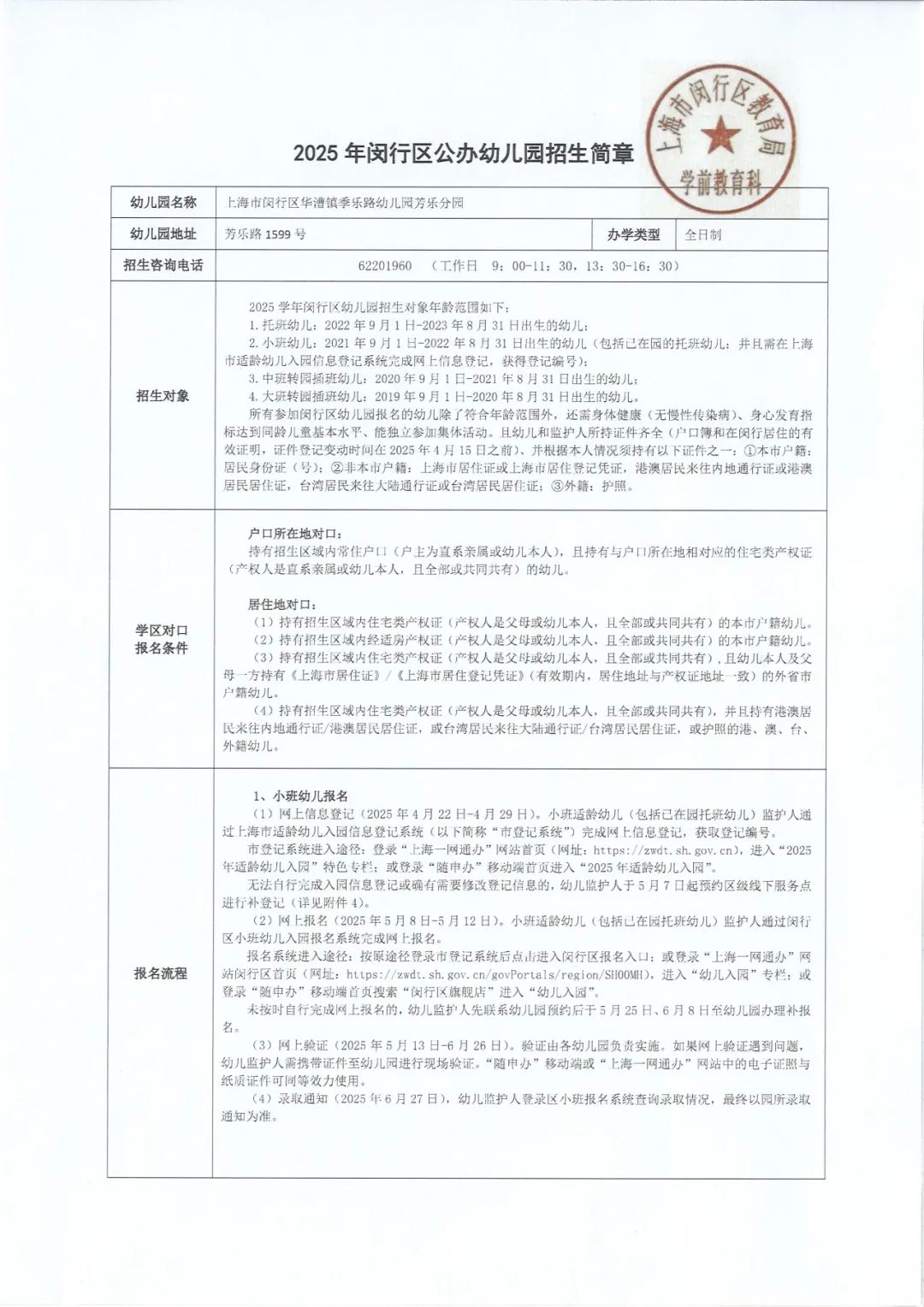 上海市闵行区华漕镇季乐路幼儿园(芳乐分园)